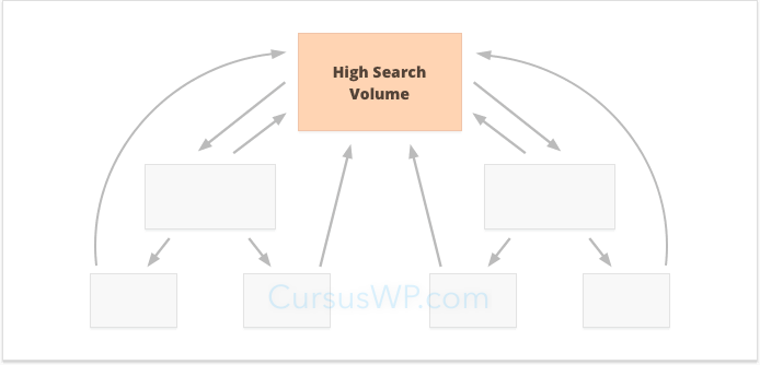 De derde interne linking strategie zal werken voor een hardere speler wiens website is geoptimaliseerd voor een paar zoekwoorden met een hoog zoekvolume en een hoge concurrentie. Dergelijke zoekwoorden hebben vaak een zeer generieke betekenis, bijvoorbeeld “koop goedkope schoenen”.
